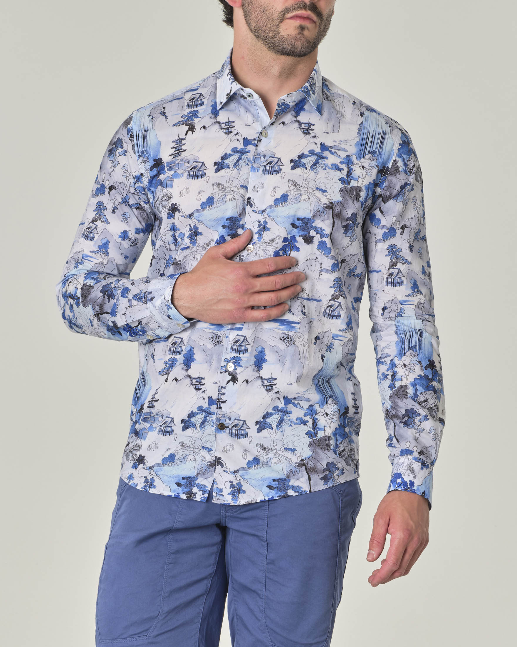 Camicia bianca in mussola di cotone a fantasia villaggio Very well made.