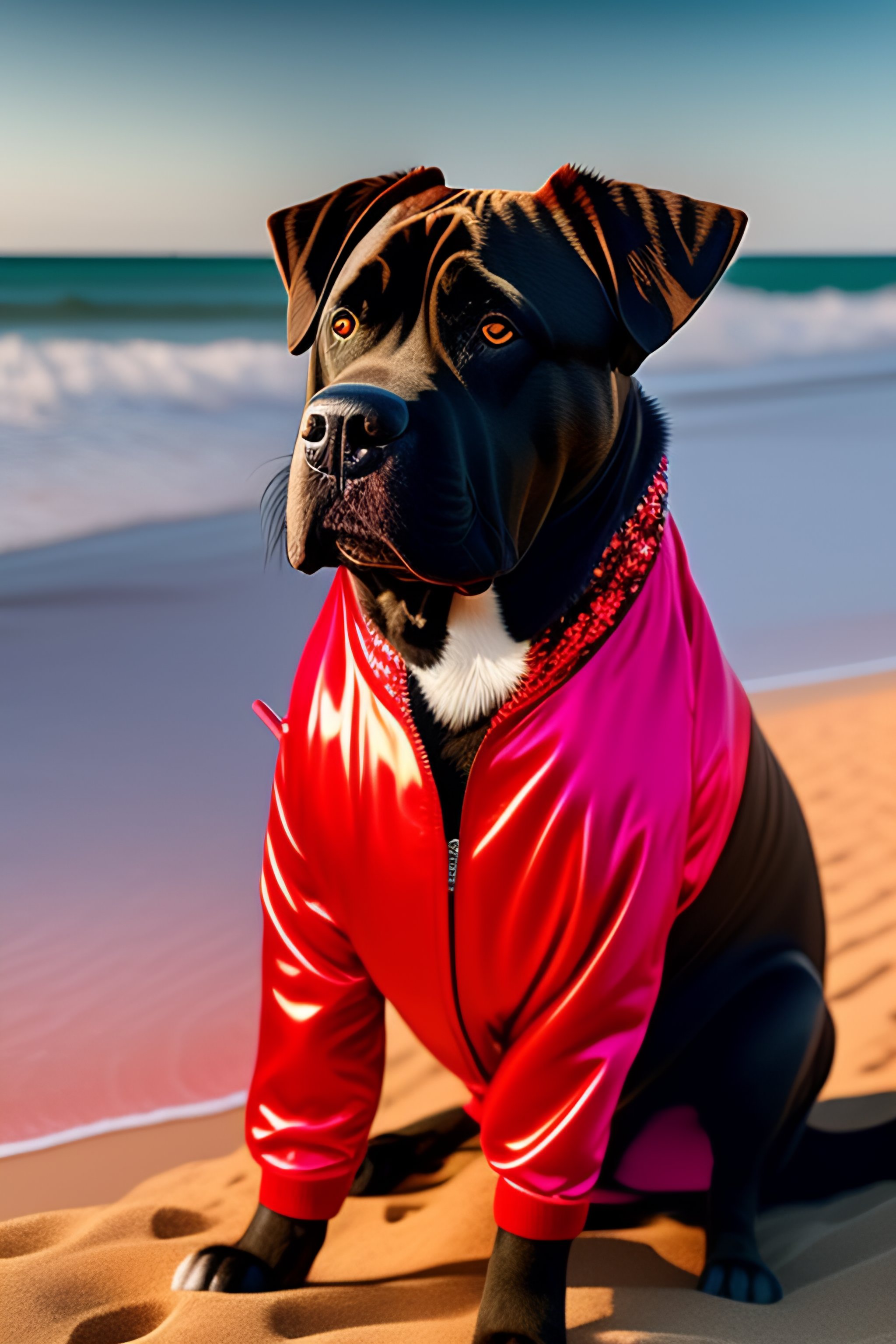 Cane Corso wearing leather jacket Dog Breed Portrait Very well made.