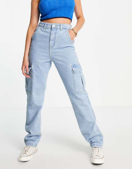 DTT straight leg jeans with cargo pockets in light blue Very well made.