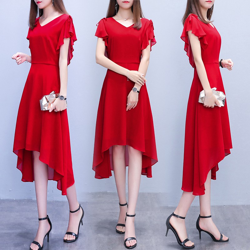 Women Ruffle Short Sleeve Chiffon Midi Dresses Summer Elegant Very well made.