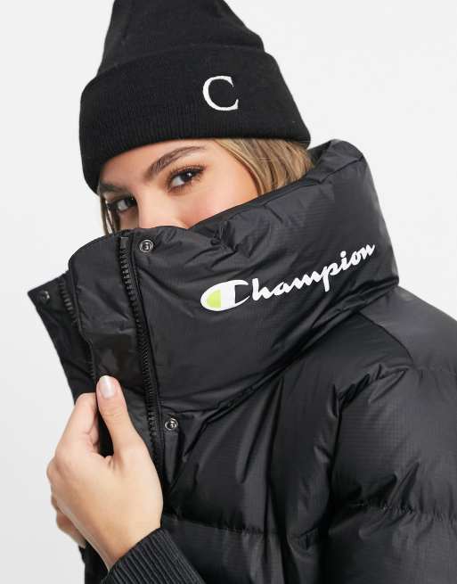 Champion cropped logo jacket in black WillardmarineShops Very well made.