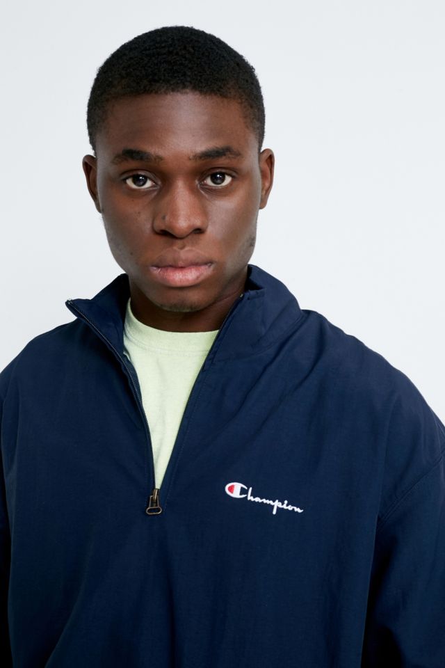 Champion Blue Nylon Quarter Zip Popover Jacket Urban Outfitters UK Very well made.