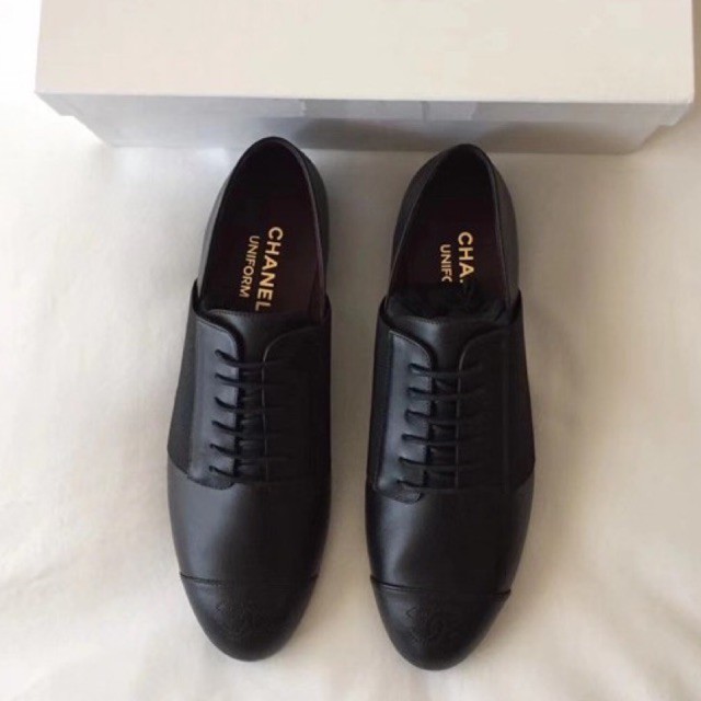 Chanel Uniform Black Leather Shoes Sz 9.5 Very well made.