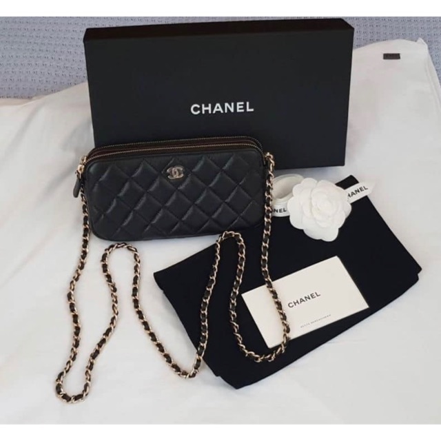 Chanel double zip WOC wallet on chain color Black Shopee Thailand Very well made.